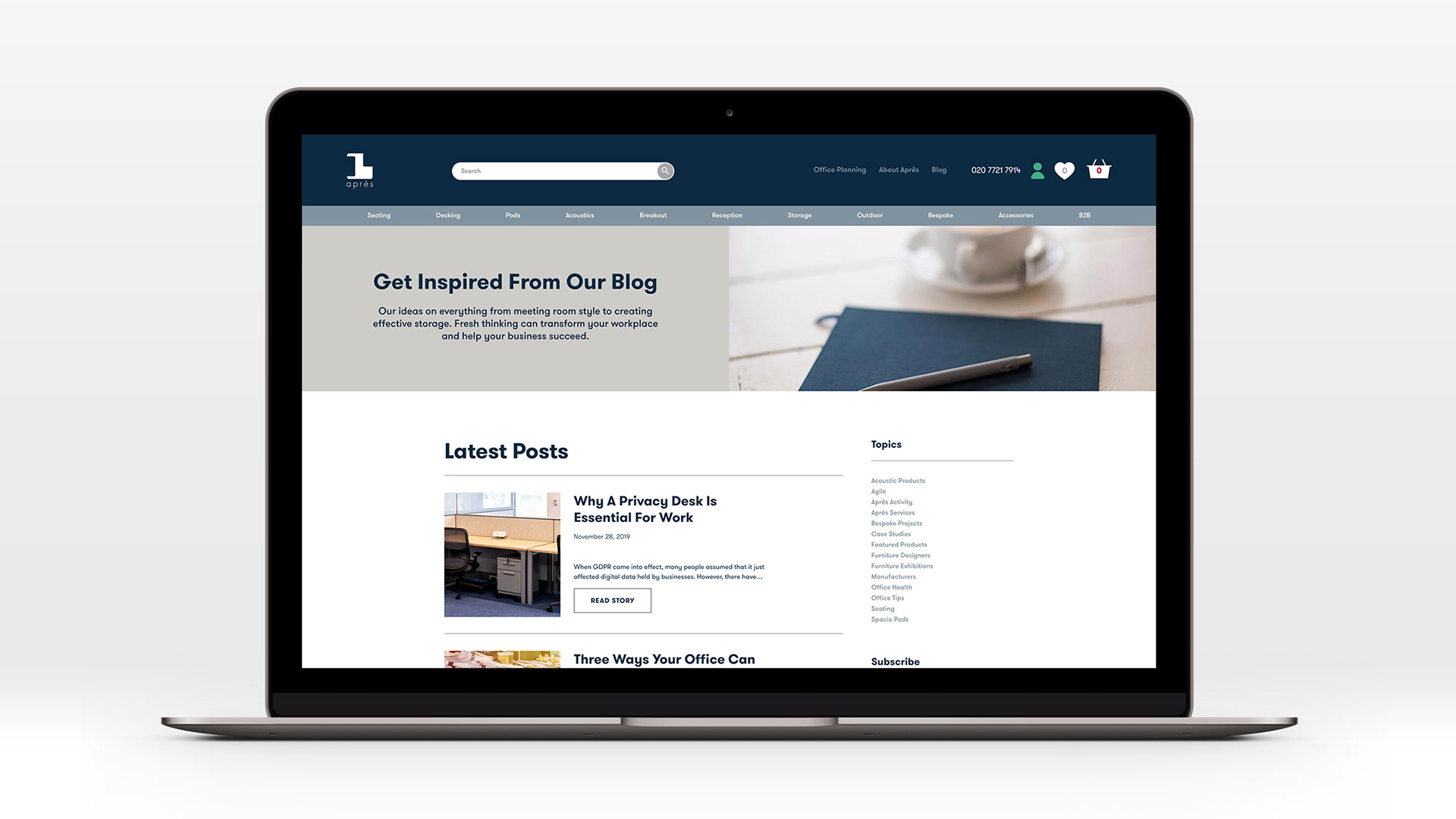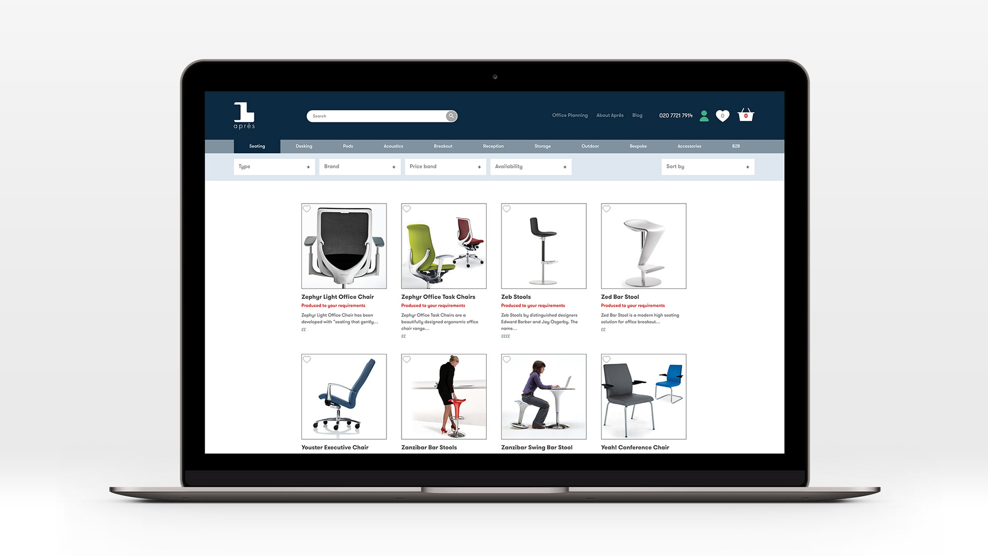 Custom ecommerce website for Après Furniture