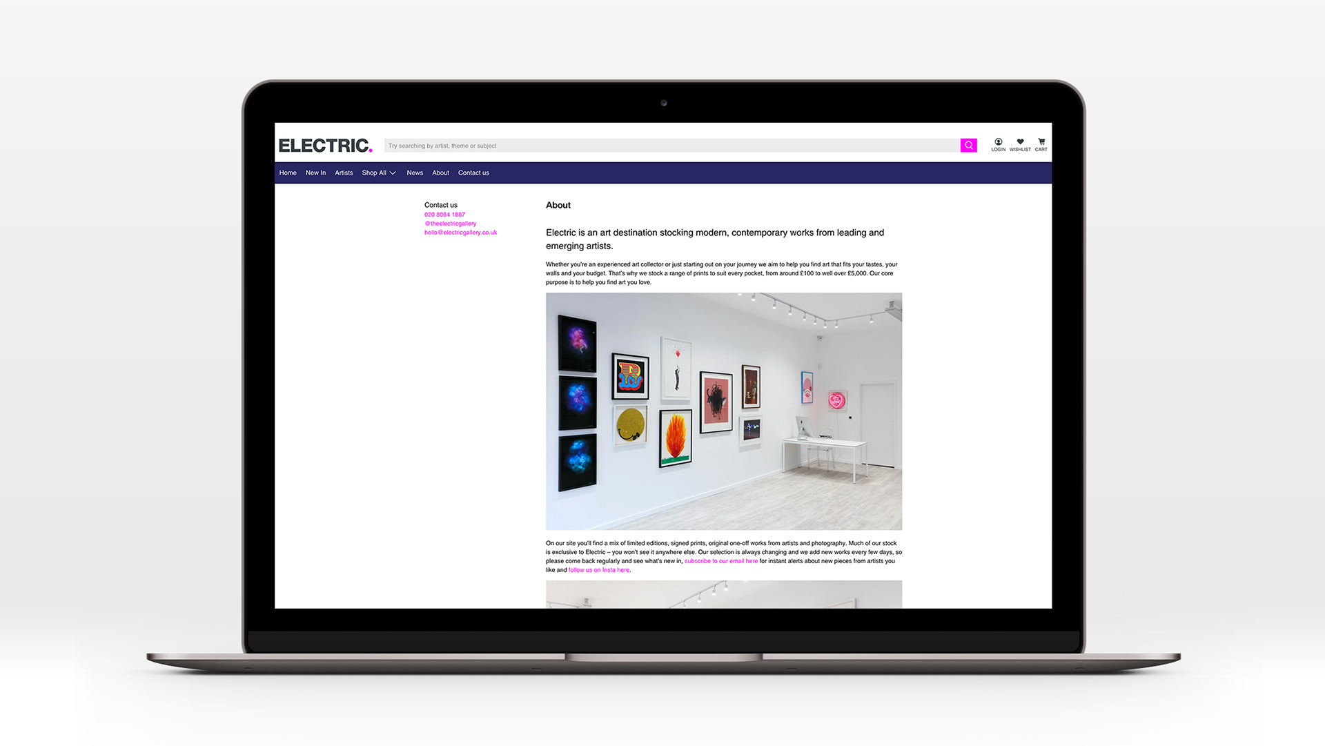 Shopify ecommerce website for Electric Gallery